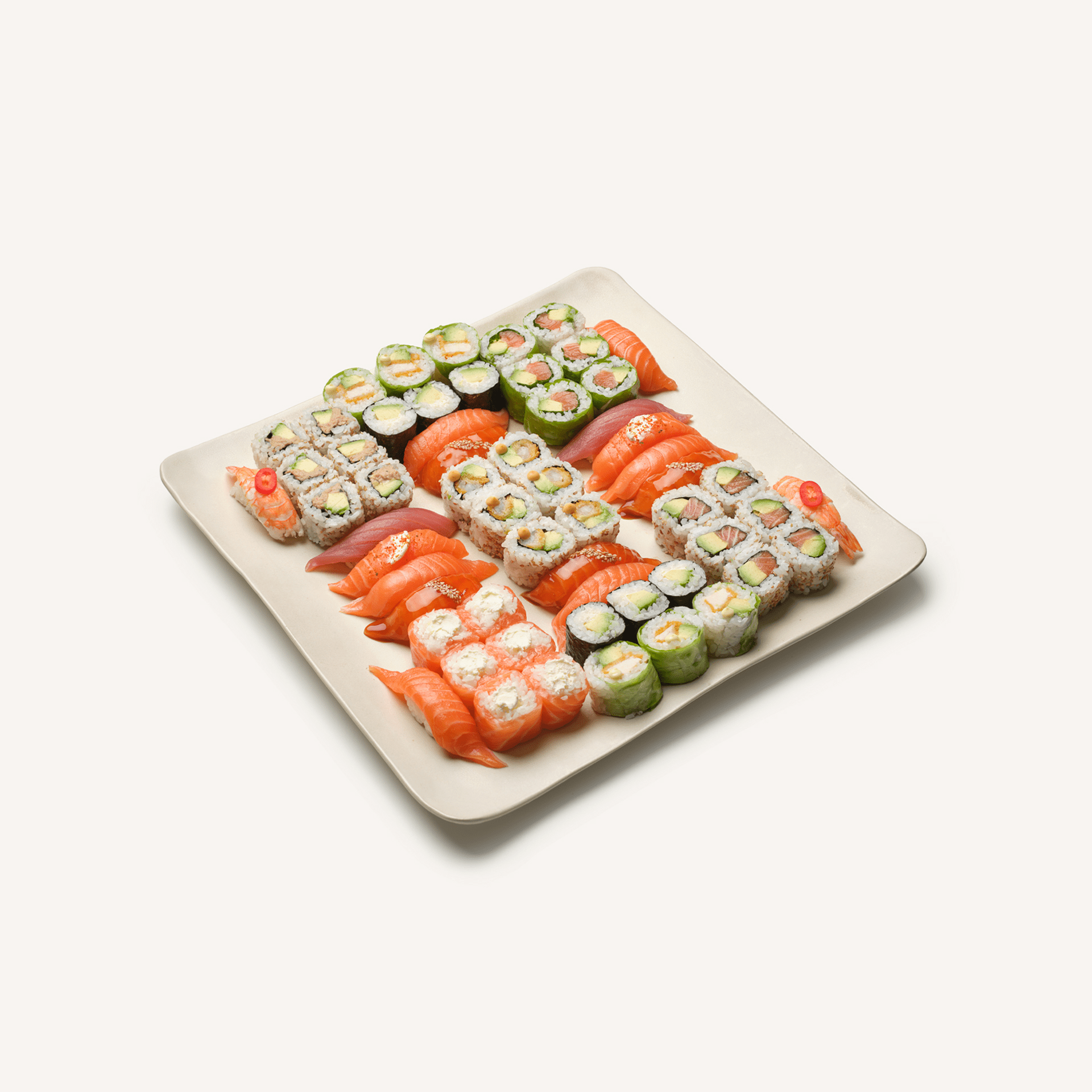 Perfect for 4-6 people as a meal or more as a snack / canape, this luxury selection of Sushi Shop favourites contains 58 pieces of sushi!