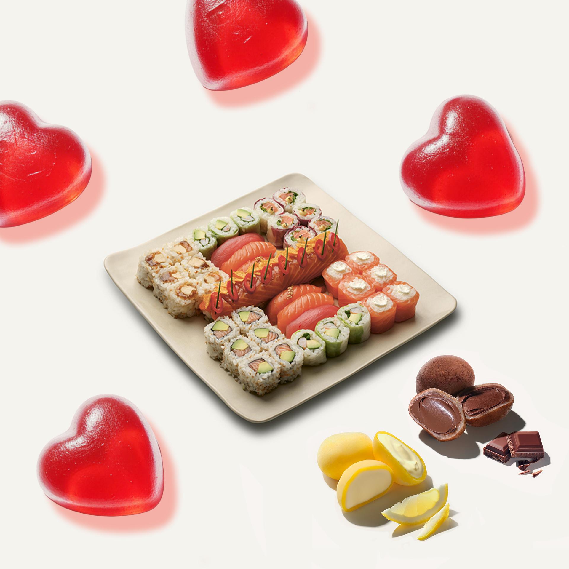 42 of our most indulgent pieces to share with your loved one, served with four irresistibly creamy cheesecake mochis in yuzu and chocolate flavours.